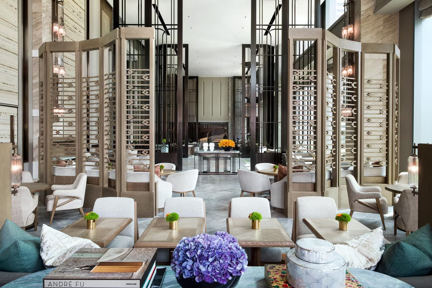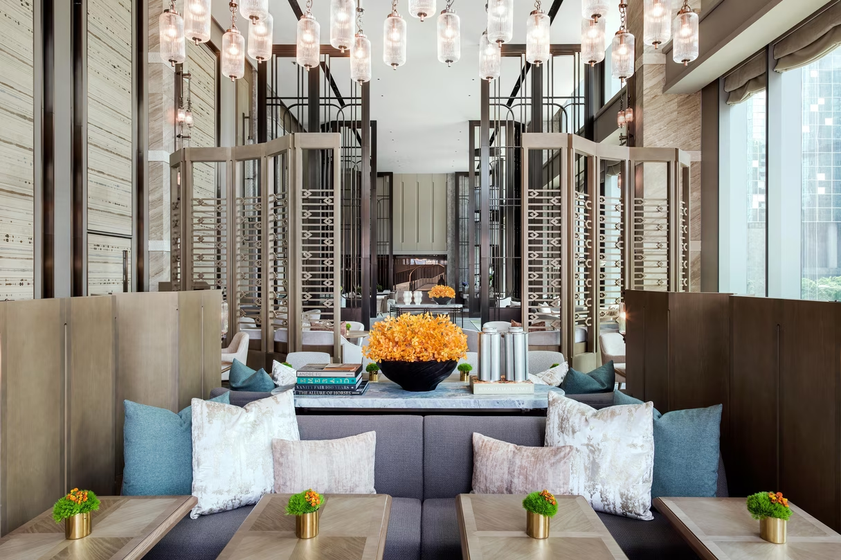 香港瑞吉酒店反映了香港知名室内设计师傅厚民(André Fu)的愿景, 融合瑞吉品牌经典元素与时尚精致格调于一体, 巧妙地彰显了香港的多元文化与典雅韵味。