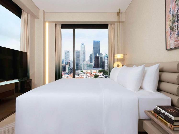 酒店的餐厅、咖啡馆、鸡尾酒吧、屋顶酒吧和餐厅融合了新加坡历史悠久的店屋建筑风格与当代时尚建筑风情。世界著名的“屠夫+餐厅老板+艺术家”达里奥·切奇尼操刀的旗舰餐厅 Bottega di Carna 正位于此,你可以尝鲜标志性的创新托斯卡纳风情料理。