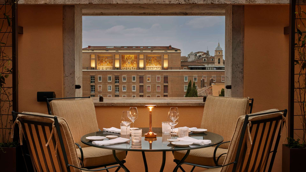 Il Ristorante – Niko Romito 餐厅位于酒店的五楼,从餐厅通向一个宽敞的户外露台,坐拥奥古斯都大帝广场的壮观景色。Il Caffè 位于一楼,氛围轻松惬意,户外宽敞的露台域位于奥古斯都大帝广场的纪念性门廊下,并装饰了种满鲜花和其他本土绿色植物的大型盆栽。大堂酒廊位于入口门厅旁边,可欣赏到奥古斯都大帝广场的景色,全天为酒店客人开放。宝格丽酒吧是一边品尝标志性鸡尾酒一边进行社交活动的理想场所。华丽的黑色大理石吧台上方点缀着由 Barovier&Toso 手工吹制的 110 个穆拉诺金粉玻璃锥。这些珠宝般的珍贵装饰与周围的灯光交相辉映,为开胃酒时间和夜晚社交活动添增神奇光彩。La Terrazza 是酒店壮观屋顶的露台,拥有城市天际线的壮丽景色,从美第奇别墅(Villa Medici)和天主圣三一教堂(Trinità dei Monti)到台伯河和贾尼科洛山(Janiculum Hill),一览无余。