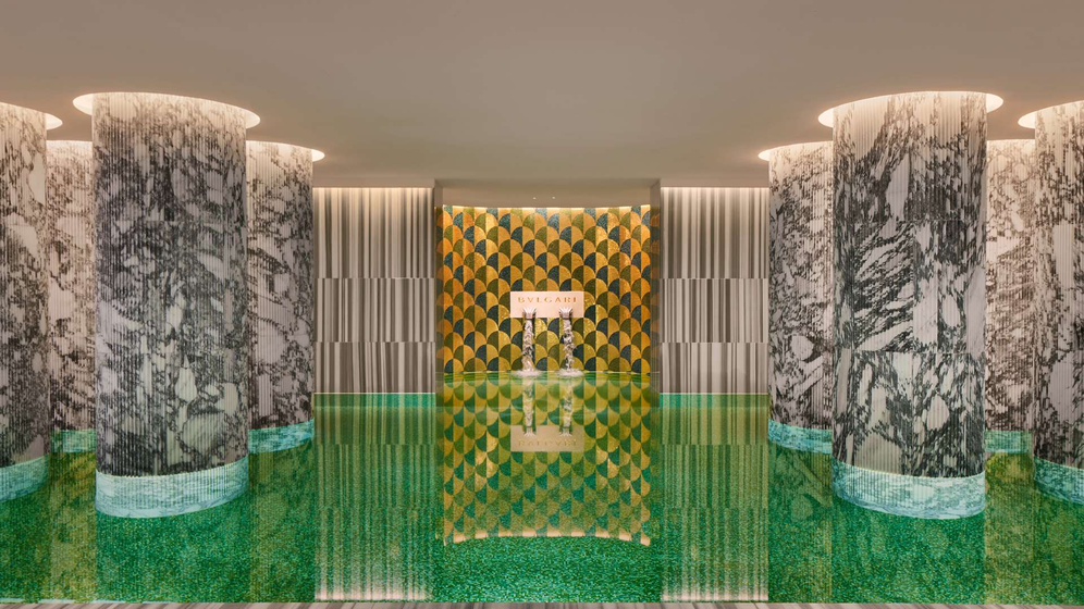 按照古罗马浴场的伟大传统,水池是水疗体验的核心。在这片占地1500平方米的宁静绿洲中间,设有一个 20 米长的大型水池,装饰有 Bisazza 制作的闪闪发光马赛克,灵感来自闻名的卡拉卡拉浴场图案,也是宝格丽 Divas Dream 系列的灵感来源。