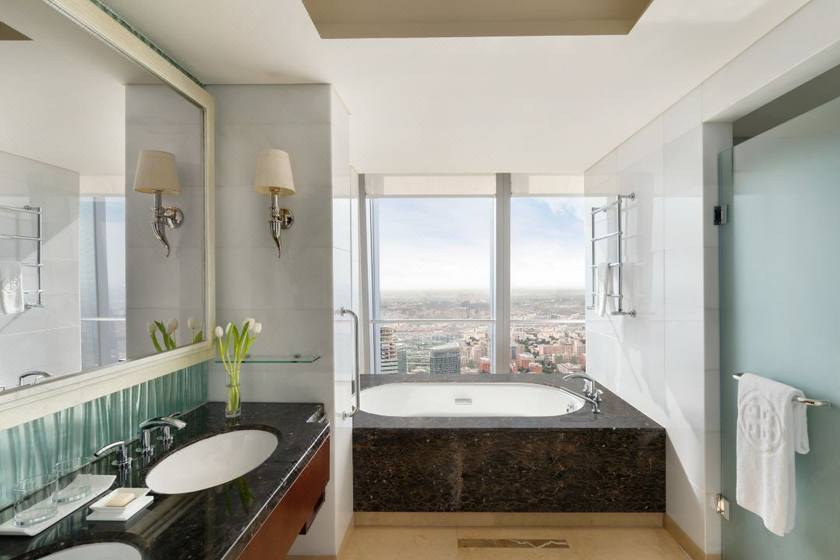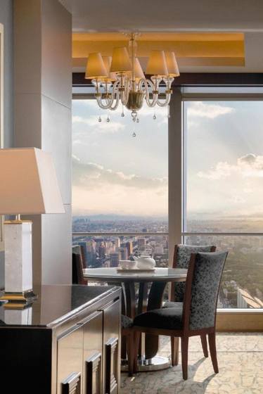 酒店有得天独厚的地理位置,毗邻高端购物天堂国贸商城,距市中心天安门及故宫约15分钟车程。房间均为落地窗设计,京城美景一览无余。步入酒店大堂,富有现代感的设计风格,将西方视觉张力与东方含蓄之美优雅地融为一体。位于大厦64-80层,在西面朝向的客房和套房内可观赏3公里以外故宫之巅的迷人景观。酒店有四间设计独特的餐厅、一间酒吧、一个酒廊以及四个优雅的私属用餐空间。宾客还可在酒店80层云·酷酒吧感受享憩时光,每日晚6时至8时,畅饮多款酒水饮品,观京城日落美景,品味惬意生活。
