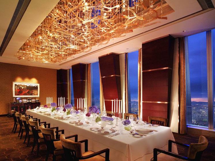 [餐饮] [餐饮]作为专属私人用餐场所之一,位于79层的主席阁提供3个包间供客人们品尝美味。每个包间都拥有极具特色的内部装潢及艺术作品,客人们可边欣赏美丽的城市美景,边享用主厨打造的个性化菜单美食。