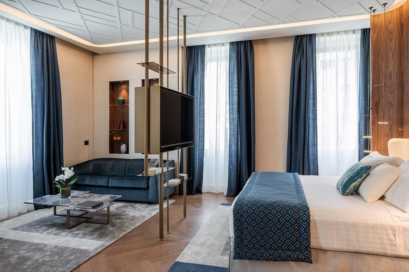 Casa Baglioni酒店位于米兰的布雷拉(Brera)区,提供精心策划的客房和套房,探索艺术与设计之间的微妙关系。每个房间都充满了意大利艺术,包括 Panzeri 设计的照明、Rubelli 的定制墙纸、Dedar 的丰富面料和 Zucchetti 的灯具。这些空间由米兰建筑师Spagnulo & Partners设计,从1960年代的米兰汲取灵感,和谐而富有想象力地融合了色彩和光线。从客厅到意大利米其林星级厨师克劳迪奥·萨德勒(Claudio Sadler)的酒窖和餐厅,所有公共区域都装饰着米兰诗意设计师Gala Rotelli创作的手工制品。