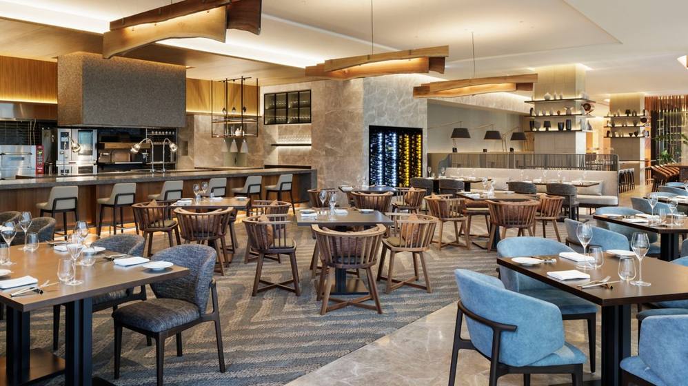 Table For Tomorrow全天营业的餐厅供应早餐、午餐和晚餐。 在高品质的环境中尽情享受精致而富有创意的美食和鸡尾酒。 在户外露台上,您还可以欣赏久屋大通公园的绿色植物。订购日本美食概念的omakase套餐,并享用由厨师使用新鲜的当地食材准备的多道菜餐点。 品尝现点现做的菜肴,包括酒吧的优质威士忌、葡萄酒和招牌鸡尾酒。