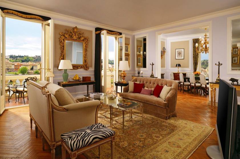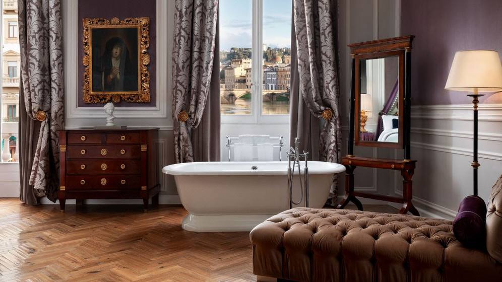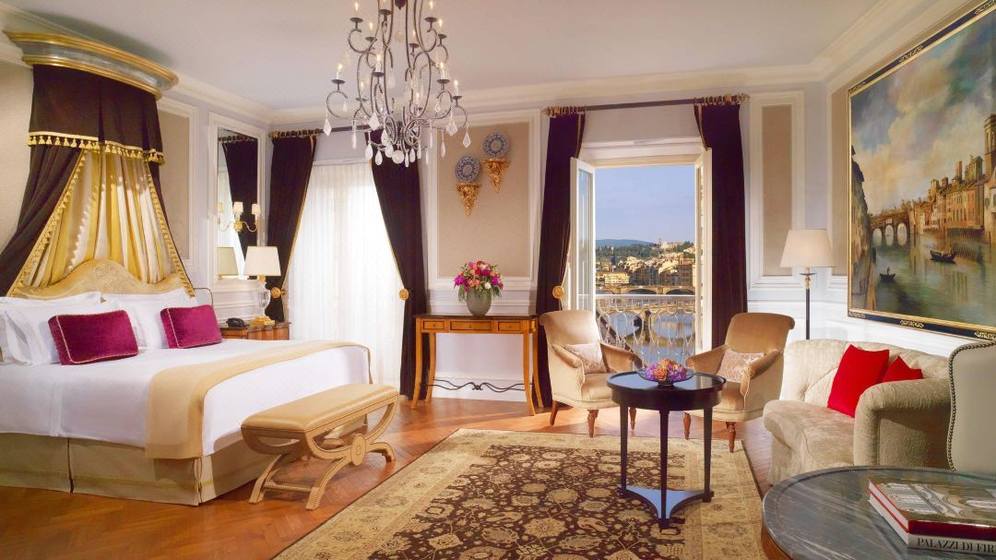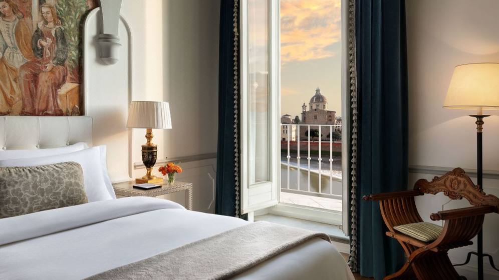 The St. Regis Florence酒店位于阿诺河(Arno River)沿岸,享有老桥(Ponte Vecchio)的壮丽景致,坐落在一栋由布鲁内莱斯基(Brunelleschi)设计的历史建筑内。这家五星级酒店配有餐厅、spa中心、健身房和配有古董家具的豪华客房。