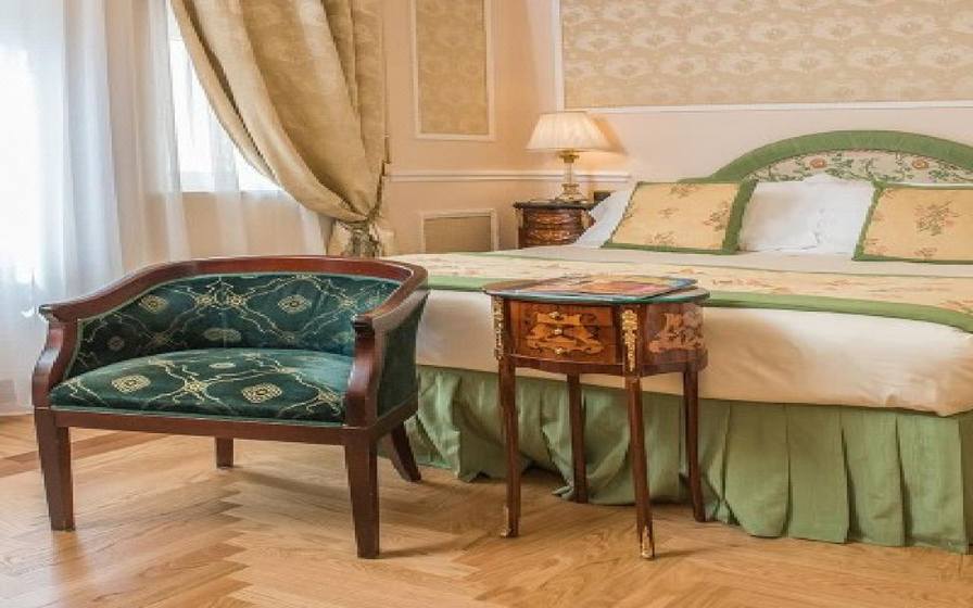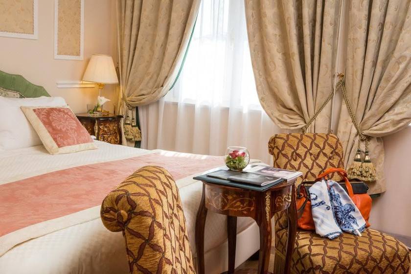 酒店拥有 74 间令人惊叹的客房,每间客房都拥有自己独特的风格。部分客房以更经典的风格布置,配有古董,赋予它们特殊的魅力和永恒的优雅与现代舒适的结合。穆拉诺玻璃灯、珍贵的纺织品和带休闲扶手椅的客厅区是此类房间最重要的元素。
