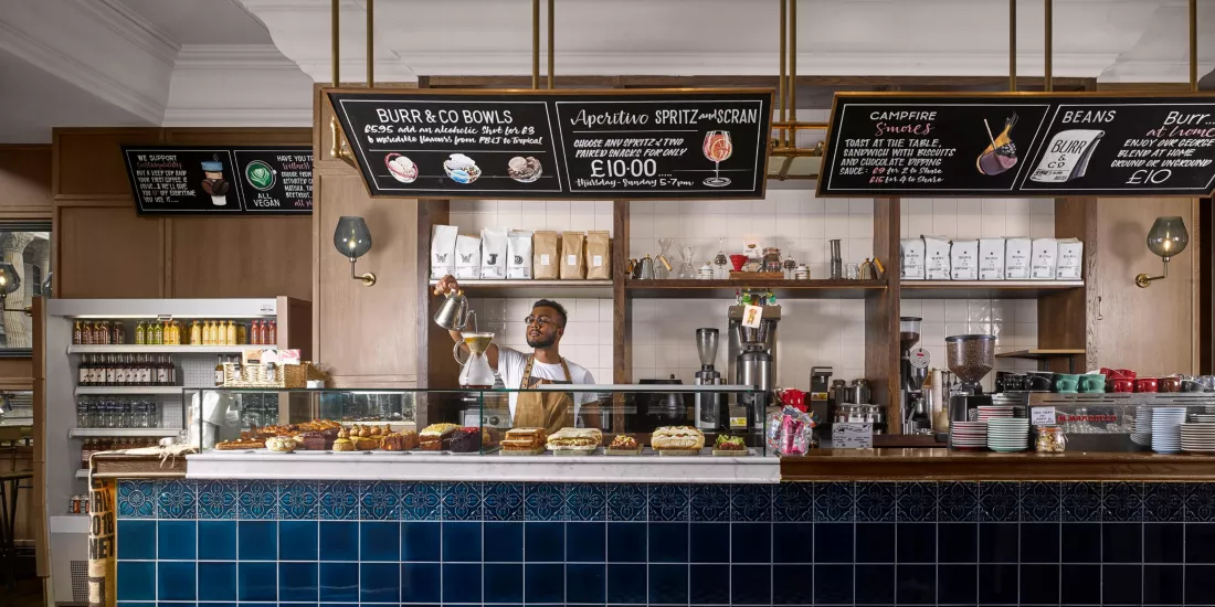 Burr&Co可以从爱丁堡的乔治大街直接进入。客人可以在这里喝杯咖啡,开始美好的一天,并以喷嚏的愉悦饮结束爱丁堡一天的游览。这里是爱丁堡市中心有名的休闲聚会场所,环境轻松舒适, 提供免费Wi-Fi。咖啡店提供精选自制蛋糕,糕点和三明治。