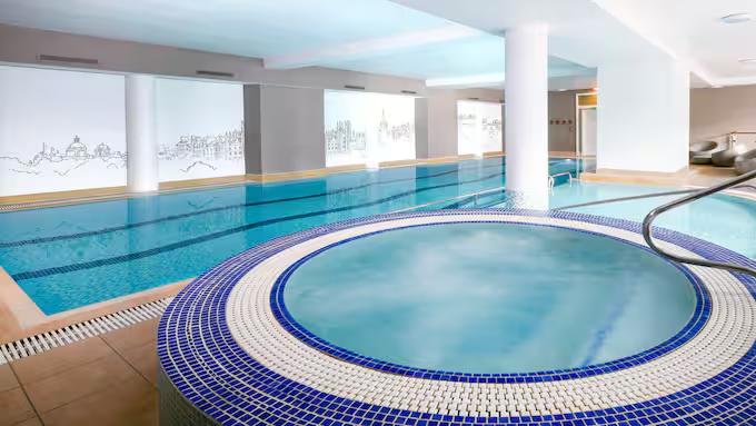 卡利多尼亚水疗中心是您舒缓身心和恢复活力的好去处,水疗中心提供与 111SKIN 和 Ground Wellbeing 合作的特色理疗服务。水疗中心还设有蒸汽浴室、桑拿浴室、漩涡浴池、两层健身房和可俯瞰爱丁堡城堡的室内游泳池。