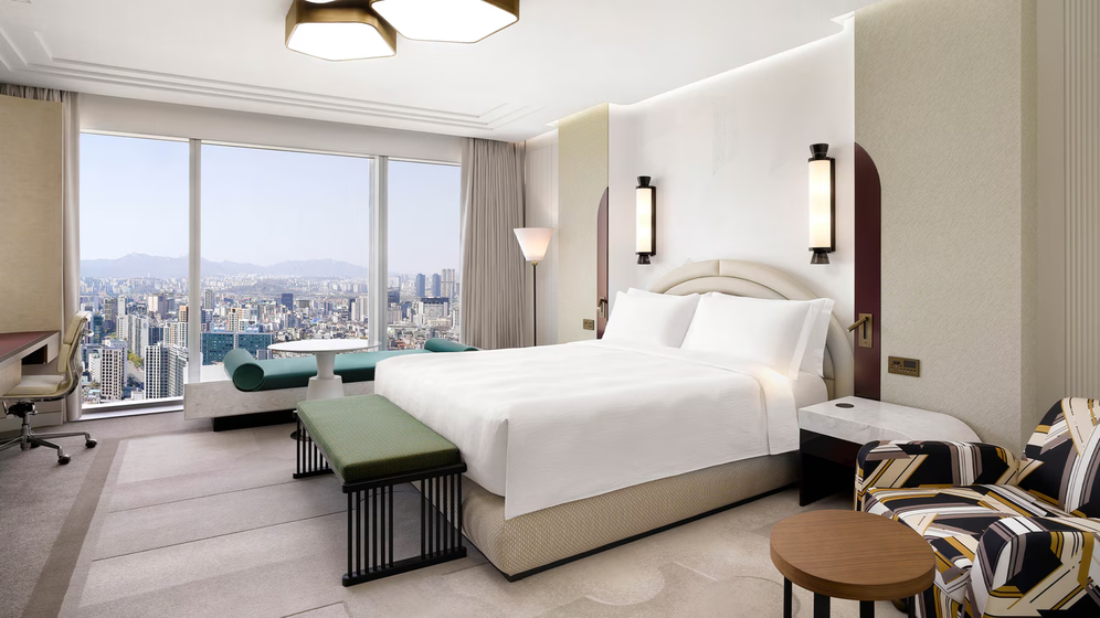 首尔江南朝昕至臻豪华精选酒店是在1914年落成的韩国首家奢华酒店的旧址上新建,隶属万豪集团旗下的豪华精选系列品牌酒店。由摩纳哥著名建筑团队Humbert & Poyet设计修建,酒店充满现代感。精致的现代美学,强烈的线条和几何图案这些具有鲜明特色的韩国设计元素,被完美融入,传承了韩国第一家奢华酒店的高贵基因,更为酒店带来了现代精致美学体验。