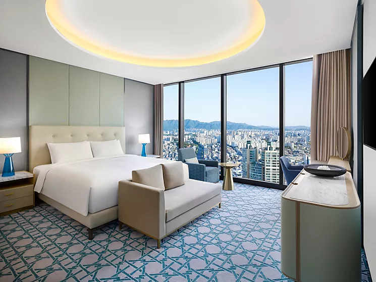 酒店位于江南的蚕室,毗邻乐天大厦和乐天购物中心。酒店从设计氛围、艺术装饰,到餐饮与睡眠体验,处处彰显法式的简约美与高级感,将传统风情与法国文化精髓在这里碰撞交融,无论是商务出行还是休闲旅游,都能获得与众不同的体验。酒店设有 403 间客房和 160 间服务式公寓,采用法式别致的室内设计,拥有全景天际线视野,可俯瞰石村湖的四季美景,为您营造出舒适完美的休憩之所。此外,你还可以在三个豪华的宴会厅成功举办研讨会和会议。每个场地都提供独特的概念和盛大、宏伟的氛围,包括配备先进设施的旺多姆大宴会厅。