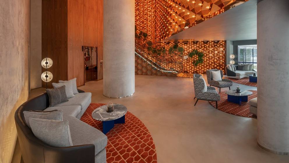 悉尼W酒店矗立于达令港之上,以其未来感十足的流线型外观和向新南威尔士州致敬的醒目内饰瞬间吸引目光。酒店既大胆又别具一格,是一个将前卫设计与澳大利亚人随性不羁的精神完美融合的精致休憩之所,巧妙融合了悉尼和澳大利亚的文化精髓,打造了一个集餐饮与社交于一体的全方位目的地。随着日夜交替,达令港酒店也悄然变换着风貌,从Living Room酒吧的未来黑色魅力到BTWN餐厅的动感活力,再到AWAY Spa这一在混凝土城市中的清新避风港,以及WET Deck和29/30两层楼高的屋顶酒吧的壮丽海港全景,无一不令人赞叹。悉尼W酒店的每一间客房、套房和工作室都采用了海洋风格的别致内饰设计,彰显出酒店毗邻海港和悉尼迷人海岸线的优越位置。悉尼W酒店始终走在时代前沿,为特立独行的旅者提供无与伦比的餐饮、休闲、娱乐和住宿体验。