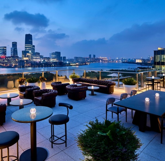 顶层无边恒温泳池坐落在郁郁葱葱的热带花园中,起身便可俯瞰黄浦江景,眺望西岸景色,感受城市魅力。