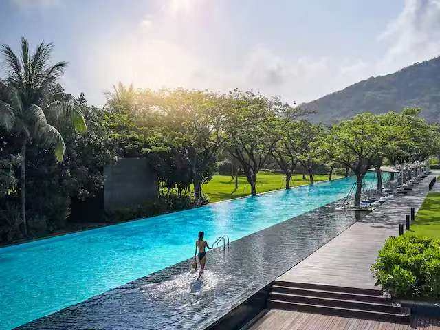 三亚太阳湾柏悦酒店面积达七万平方米,却仅设有205间客房、套房及别墅。客房面积始于62 平方米,部分客房设有阳台。精致简约的室内装饰诉说着微妙的东方雅韵。海景房全景窗从房间一端延伸到另一端,将壮丽海景尽收眼底,并由垂直镜面玻璃继续延伸,镜中呈现的海湾与窗外海湾实景联袂打造出浑然天成的全景视觉盛宴。