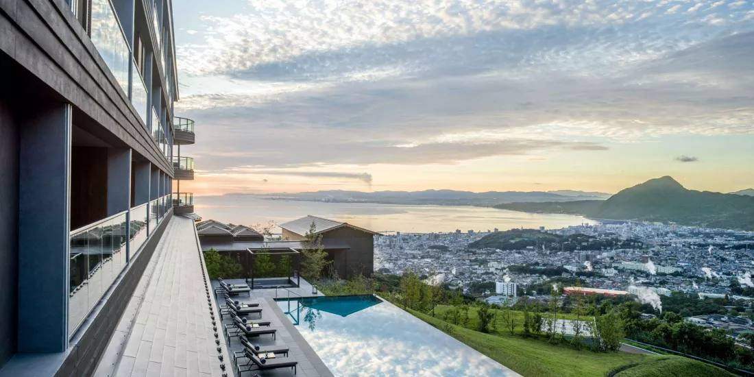 坐落于俯瞰日本最著名的温泉小镇之一,位于别府的山麓之间,酒店享有郁郁葱葱的山峦、辽阔的海湾以及天然温泉蒸腾而上的水雾等绝美景观。在这里,您可以沉浸在无边泳池,享受放松身心的水疗护理,体验一个充满休闲氛围与自然美景的世界。