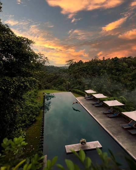 酒店选用了传统巴厘岛风格设计与现代几何元素相融合,体现在建于高架之上的客房与别墅之中,从那里您可以俯瞰阿勇河河谷的美景。