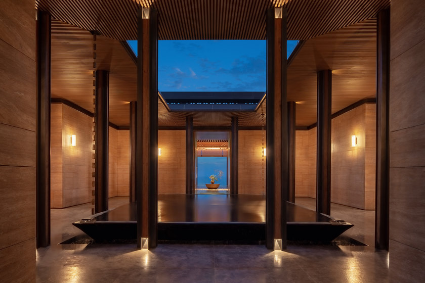 珠海东澳岛阿丽拉酒店坐落于东澳岛最南端岛尖悬崖之上,具有山石般沉稳的建筑主体和海浪般的悬浮顶冠造型。秉承尊重自然的设计原则,建筑对于突兀的酒店客房体量进行巧妙处理,两条略带分角的平行线条好似劈开的山石,俯瞰前冲入海的动感造型呼应着岩石与大海碰撞的激情与冲动。
