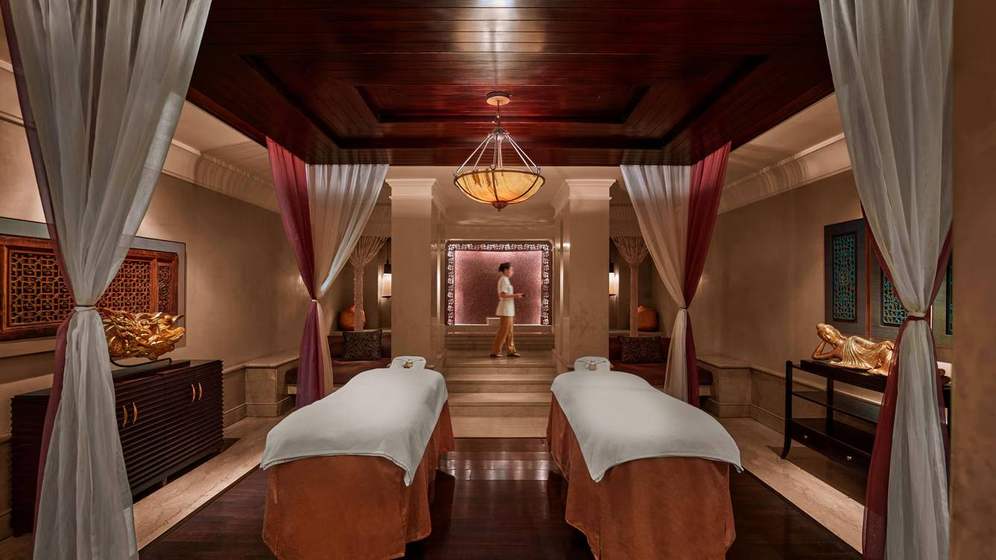 这座占地2,500平方米的尊贵水疗中心提供30种异域风情的治疗服务,并拥有一个令人叹为观止的接待区,该接待区位于酒店二楼,设有宽敞的单人间和情侣房,均配备浴缸和按摩浴缸,以及包含私人蒸汽浴的豪华套房。
