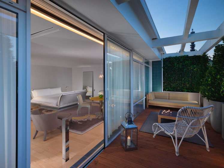 桑德森伦敦酒店坐落在西区的中心地带,是远离城市喧嚣进入幻想世界的一个宁静休闲之地。二十世纪五十年代的地标性建筑已被菲利普·斯塔克改造成超现实的科克托式梦幻世界,体现了智能、简约的全新奢华,而奢华中又带有一定的机智和讽刺。客房由 Banjo 设计师 Tim Andreas 设计,保留了各种奇思妙想,同时处处提供精巧的细节和奢华的触感。