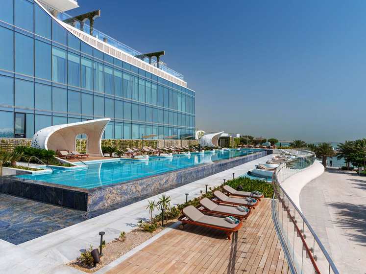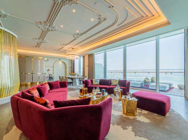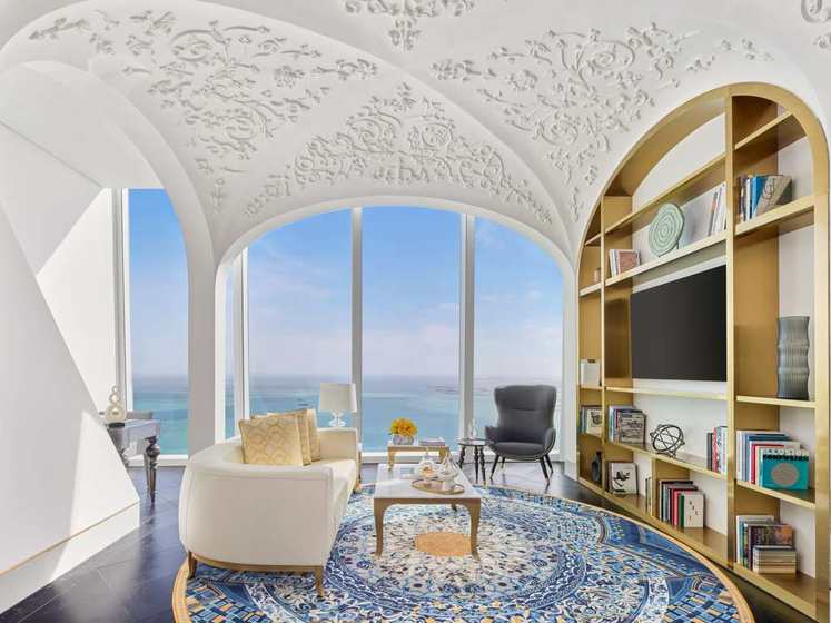 酒店拥有 132 间华丽的套房,带露台,可欣赏到大海或城市景观,提供个性化的管家服务,设有豪华餐厅/酒吧和健康养生水疗中心。客房高耸于城市上方,从卧室和起居用餐区的精致家具到大理石浴室和豪华室外休闲区,处处彰显精致的设计。