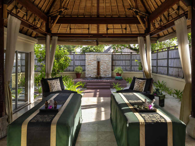 沐浴在印度洋的微风中,享受以亚洲传统护疗哲学为基础的系列Spa护疗,放松身心。护疗采用当地种植的椰子制成的滋养膏,能舒缓你的身体。在无暇的感官圣殿中,沉醉在温馨的氛围里,让专业的护疗师以灵性手法轻柔按摩你的身体,让你的肌肉放松。美丽的设施、出色的护疗师和独特的整体疗法相结合,渐渐舒缓您的身心,让您进入松弛的休息状态。