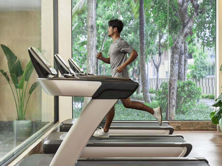 24 小时健身中心配有有氧运动器械和力量训练设备。在游泳池旁放松身心,在水中真正的有效放松时刻。
