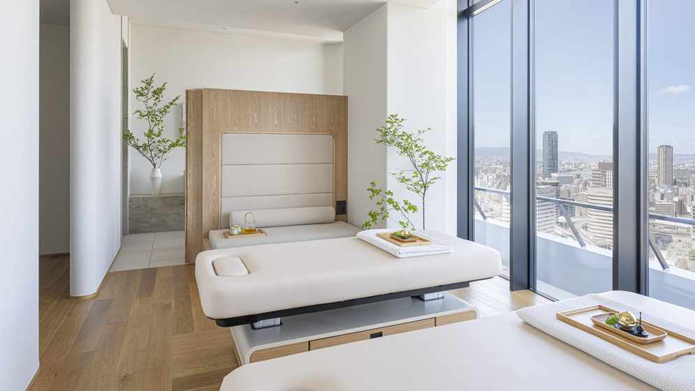 登临 36 层,沉浸于妙不可言的放松之境。挥臂畅游我们 16 米(52 英尺)长的室内泳池,欣赏大阪天际线的全景风光。在五间护理室之一尽情奢宠自己,其中包括一间带私人浴室的双人套间。体验日式传统浴池,在桑拿房焕发活力,或在我们的 24 小时健身中心强身健体。诸般精彩,尽在我们的专属水疗楼层。