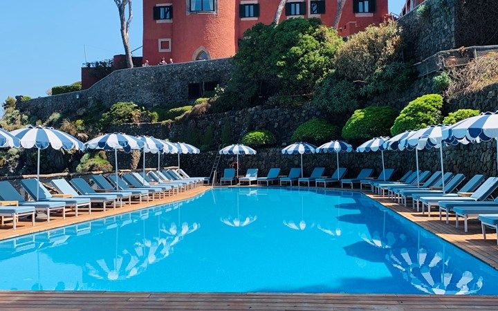 伊斯基亚距离繁华的那不勒斯港仅 18 海里,从迷人的卡普里岛乘渡轮即可到达。这里节奏轻松惬意,历史上一直是疗养胜地。梅扎托雷酒店及温泉水疗中心坐落在岩石岬角,傲然俯瞰海滨美景。主楼坐落在一座 16 世纪瞭望塔的遗址上,客房和美丽的公共空间掩映在占地 17 英亩的松树林中。度假村充分利用了其令人惊叹的地上和地下自然环境。岛上具有治疗功效的温泉流入三个水疗池,而火山泥则用于水疗护理。户外运动爱好者也被伊斯基亚的徒步小径所吸引,其中许多小径蜿蜒环绕海岸线,可以一览第勒尼安海的壮丽景色。