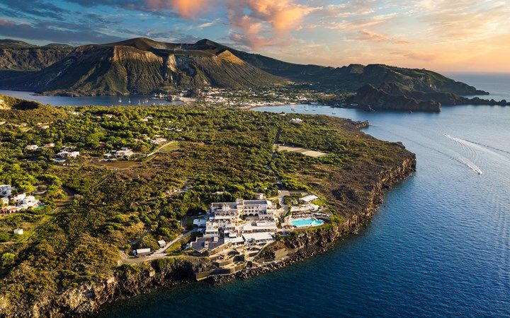 瑟拉西亚海景水疗度假村 (Therasia Resort Sea & Spa) 坐落在武尔卡诺岛上,周围环绕着未受破坏的地中海自然风光和开阔的地平线。度假村采用地中海建筑风格,搭配典雅的家具,与黑色火山熔岩石形成鲜明对比,营造出精致的氛围。 Therasia 是放松身心的理想场所,其无边际泳池配有活力水力按摩、恢复活力的健康中心以及被梯田式天然泳池环绕的沐浴平台。