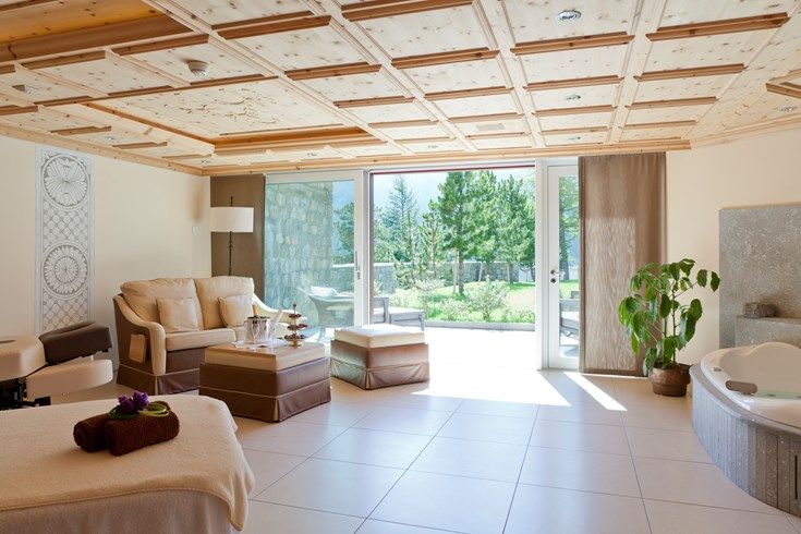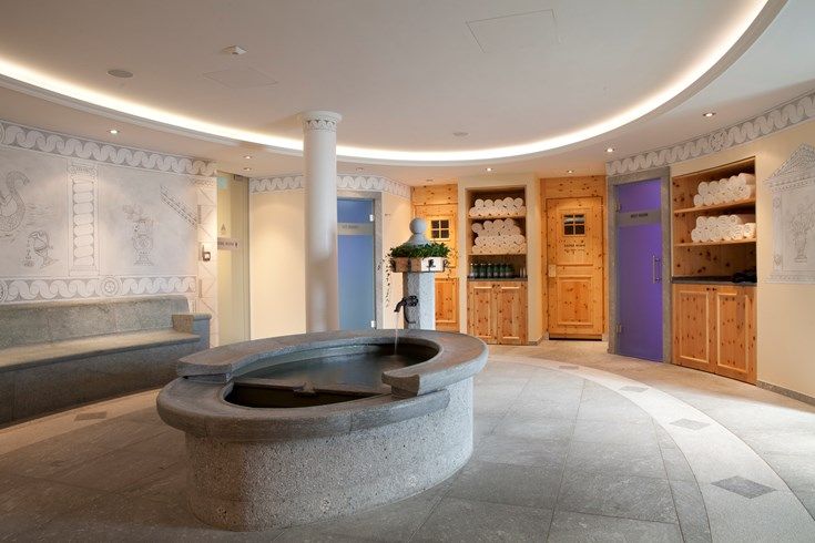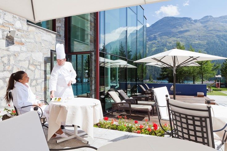 宽敞的 Le Grand Hall 大堂是一处“被看见”的舞台,无论是在滑雪后的闲适时光,还是夏季的养生季节,都吸引着来访宾客。在这里,人们既可以沉浸于圣莫里茨壮丽的自然风光,也可享受酒店享誉盛名的“宫殿水疗中心”(Palace Wellness)所带来的全方位放松体验。