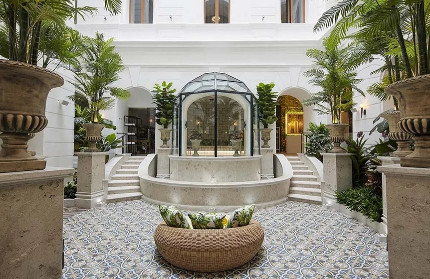 布达佩斯神秘酒店是一座历史悠久的建筑,由19世纪的匈牙利共济会建造,充满了奇幻与神秘的色彩。酒店位于布达佩斯的第六区,这座全新的豪华精品酒店被传说、秘密和视觉错觉所环绕。前台上方、入口处的火焰以及隐藏在窗帘后面的电梯都增添了酒店的神秘感。