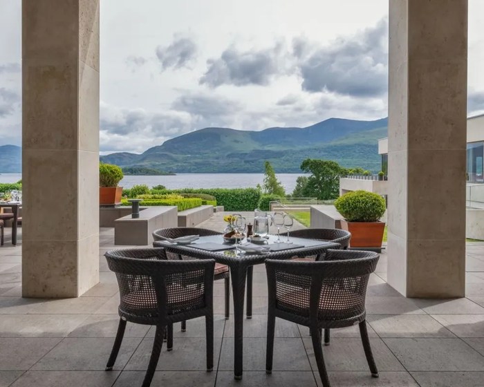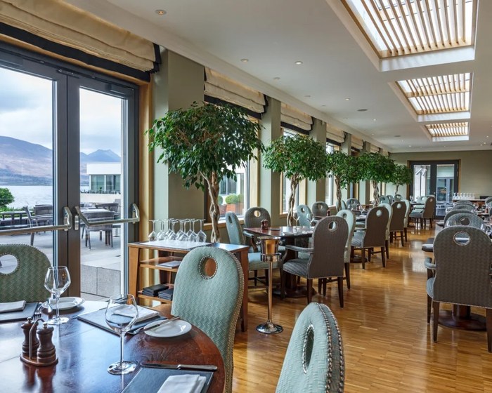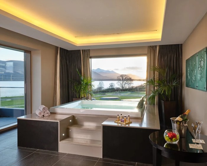 酒店坐落于风景如画的基拉尼湖畔,俯瞰着占地26,000英亩的基拉尼国家公园,客房与套房以现代风格装饰,设计精致高雅,标准极高。度假村内设有多个餐饮选择、面积达50,000平方英尺的湖畔水疗中心,以及丰富的户外活动和周边景点,完美展现了爱尔兰独特魅力。