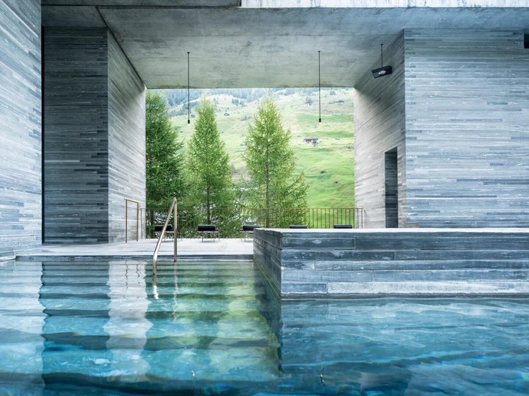 酒店的核心亮点是由建筑大师彼得·卒姆托(Peter Zumthor)设计的温泉疗养中心,使用6万块本地石英岩建成,曾荣获多项建筑奖项。每一处细节都追求极致:例如荣获米其林二星的7132 Silver餐厅,以主厨米蒂亚·比尔洛(Mitja Birlo)打造的创意品鉴菜单著称;而7132 Blue Bar酒吧则在斯坦威三角钢琴的现场爵士乐中,提供创意鸡尾酒和咖啡。