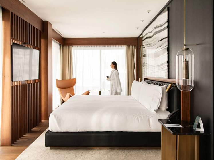254间客房和套房将优雅与现代工业风格巧妙融合,营造出一个层次丰富的居邸空间。透过全景落地窗感受城市活力或壮阔的黄浦江景观,从客房的迷你吧调制饮品,在柔软的床上放松身心,再出门沉浸在城市丰富的文化中。