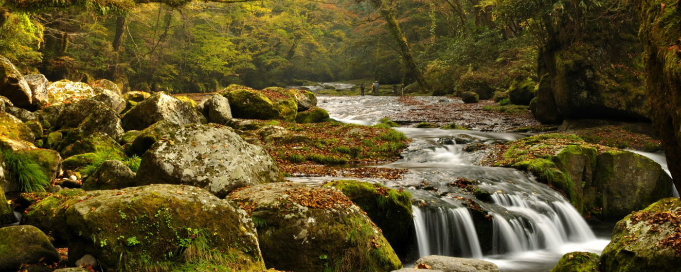 今天我们将前往红叶名所菊池渓谷,沿着溪流旁的小径,大家可以漫步于红叶中体验秋日的韵味。随后,带您前往位于大分县的九醉溪(车程约1小时)。这里是九州岛最具人气的红叶热点。通过溪谷的道路九曲十三弯,因此又有“十三曲”之称。从附近的展望台眺望过去,风景非常壮观。 在“十三曲”附近有一间名叫桂茶屋的餐馆也是九醉溪其中一个很有名的观光点。这里的服务生全以狸猫妆扮热心款待,充满活泼的气氛,餐馆提供乌冬等面类与定食等日本餐点,另附设售卖当地特产品、独创甜品等店铺,也有免费的天然浸足温泉。