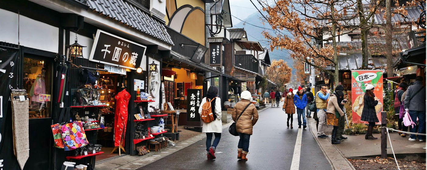 今晚我们将入住由布院温泉酒店(车程约30分钟)。在这个温泉小镇可以看到很多当代日本的手工艺品,狭窄的街巷充满瓷器、服装、木制品以及特色美食。晚上可以在酒店里泡着露天温泉看星星,也可以到温泉街上逛逛。