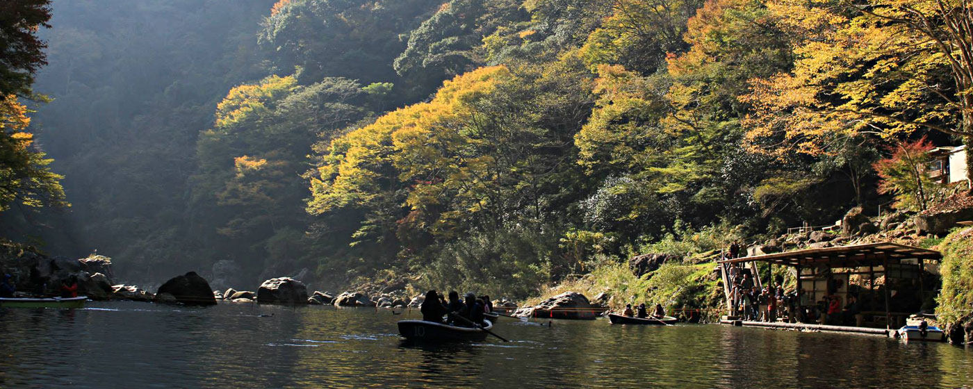 在高千穗峡透着阳光的枫叶峡谷中流连驻足或者坐上小船,仰望真名井瀑布,可切实感受到17米断崖飞泄而下所带来的壮观、震撼。