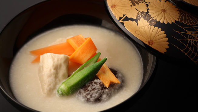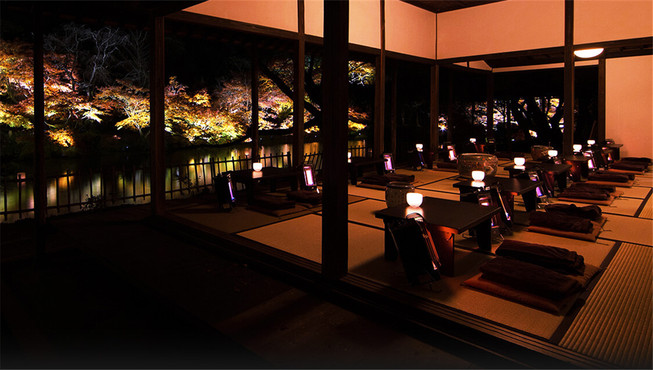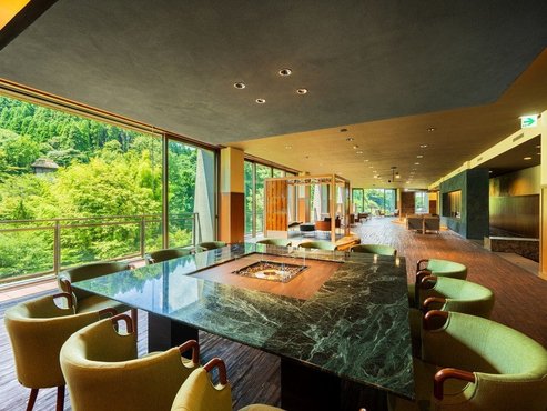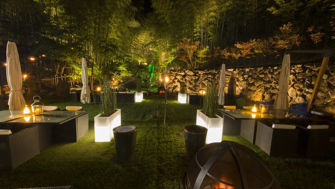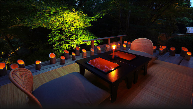 旅馆提供丰富的美食,您既能在此享用与御船山乐园相匹配的竹林怀石旅宿料理,也可以品尝使用顶级食材和著名伊万里有田烧盛装的贵宾怀石料理。