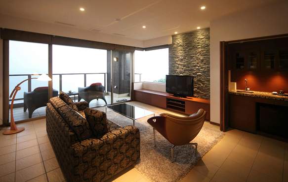 「ENOWA」设施巧妙利用了山腰间地形的高低差特性,打造了数栋别墅、客房座落其中,并大量采用石、木、泥土等天然建材,营造质朴、充满大地气息的奢华空间。房型包括100平方公尺等级的顶级套房,位于制高点且设有无边际泳池,也有80平方公尺等级的双人大套房,每间房型都有独一无二的室内设计及眺望景观,住宿客人还可以使用设置于森林山丘上的露天三温暖设施,十分豪华!