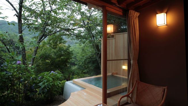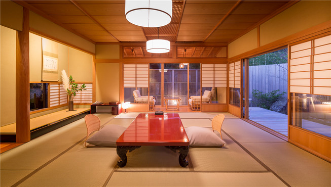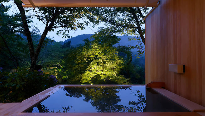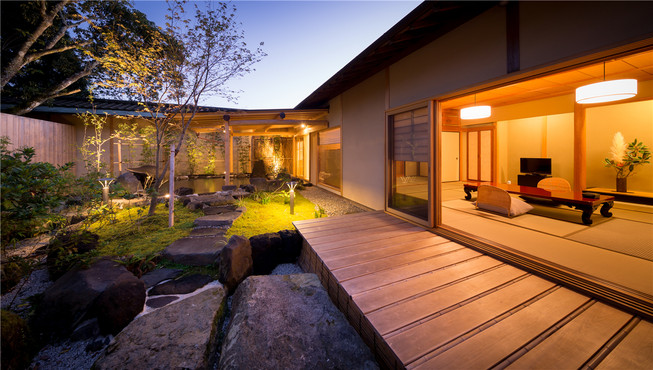 这里的每间客房都经过精心设计,一部分客房配以露天浴池和赏月台,还有专用散步小道。旅馆将庭院与建筑、四季、自然以及周边环境融为一体,创造出能治愈心灵的温馨空间。