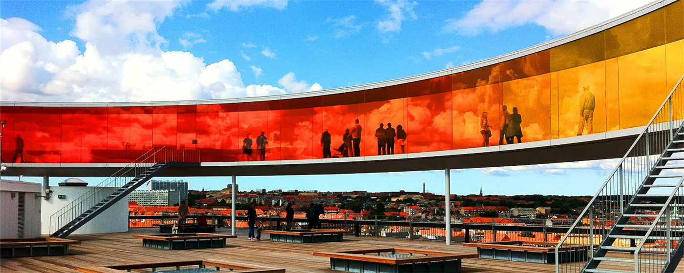 丹麦艺术家Olafur Eliasson悄悄地把天上的彩虹搬挪到了Aros Aarhus 美术馆屋顶。