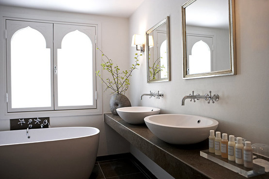 建筑师对酒店的室内空间进行了温和的干预,保留了建筑原有的新古典主义风格,使其兼顾了丰富、优雅和宽敞的品质以及美观的细部。与此同时,新的室内空间还拥有简洁的设计和充满意趣的家具和配色。鲜明的蓝绿色被使用在77间客房之中,一些原创的装饰品则作为独立物件点缀其间。大理石、木材、皮革和羊毛等材料皆来源于自然本身。