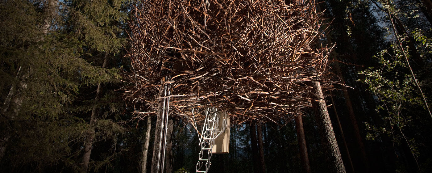 树屋酒店的每一间主题房间都拥有迥异的外形、内饰与家具,甚至灯光,分别由六位知名建筑师设计完成。图为鸟巢房。