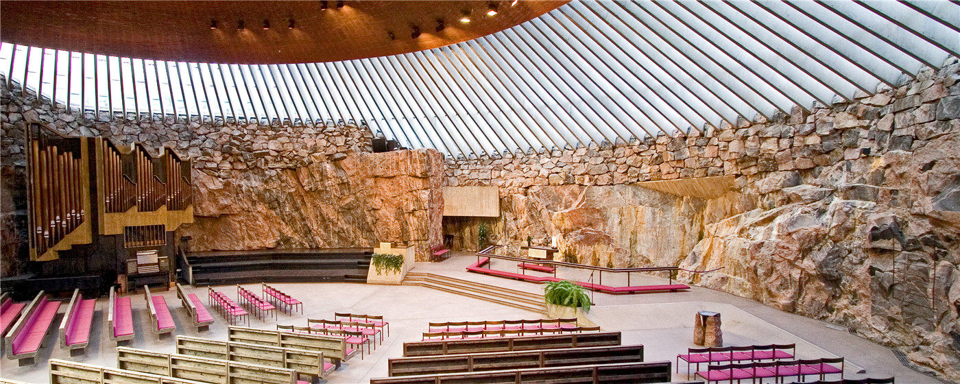 岩石教堂,卓越的设计极为新颖巧妙,完成于1969年,是斯欧马拉聂兄弟的精心杰作。