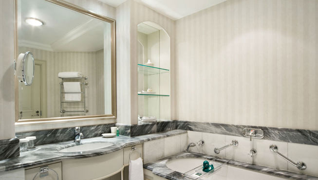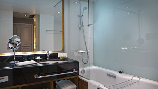 酒店拥有201间客房,包括69间标准双人间,99间高级客房,22间豪华客房及11间套房。酒店拥有意大利餐厅、黄金酒吧、法式小酒馆、宽敞的休息室、大理石休闲区和会议厅。酒店虽为古老的建筑物,装饰却十分的现代豪华。酒店客房内多件家具都是专门定制,其中豪华的面料设计更显经典优雅。现代感的室内设计与这幢古老的石头建筑相结合,与之协调并形成对比,赋予这间酒店独特的个性特质。