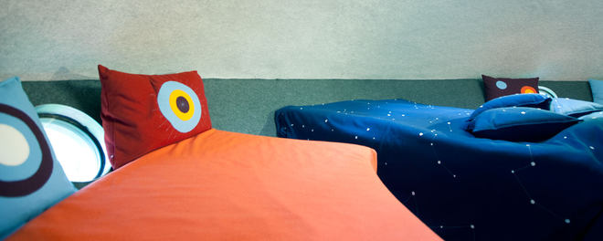 树屋酒店的第一期共有七个主题房间,分别命名为鸟巢、镜魔方、机舱、蓝椎体、蜻蜓、UFO,以及最近新落成的神秘“第七间房屋”,分别由七位设计师完成。每间客房根据主题的不同配有特制的家具和灯光,制造出不同主题效果,梦幻又有趣。