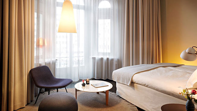 诺比斯酒店坐落在瑞典斯德哥尔摩市中心的Norrmalmstorg广场,是两幢相邻的高大气派的古典建筑,建造于19世纪下半叶,是当时具有代表性的石质建筑。酒店由瑞典著名设计师Claesson Koivisto Rune设计,现代感的室内与外表相对比,赋予酒店独特的个性。