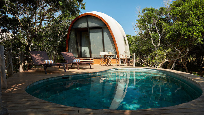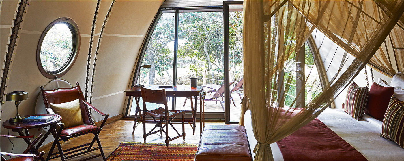 Wild Coast Tented Lodge 毗邻亚拉国家公园,28个奢华茧型帐篷分布于动物们取水的地方,因此,身处帐篷外的观景平台即可与它们“亲密接触”。