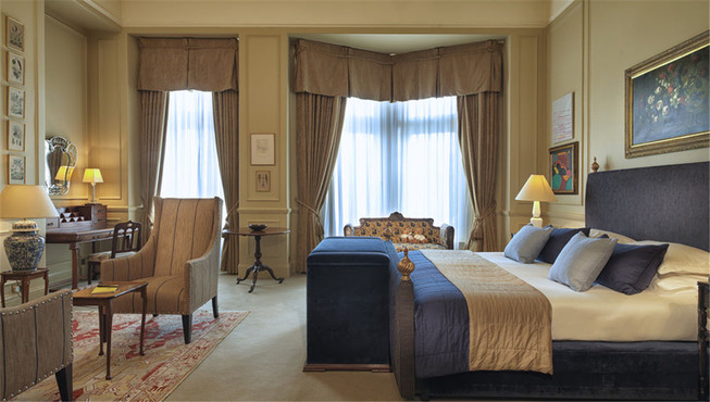 一踏入酒店,您就将看到双层高度的天花板、螺旋式楼梯和巨大的水晶吊灯。超大的古董丝质地毯和皮椅邀请着客人们来壁炉前放松一下。客房与套房同样优雅、宽敞,手工打造的床具上铺设着奢华的床品,定制家具和复古装饰更增添了一份个性与情趣。