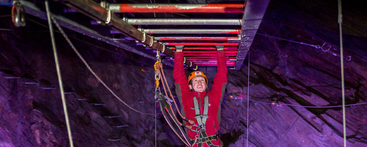 B:穿越斯诺登尼亚地下洞穴,通过洞穴探险(Zip World Caverns)中的高空滑索,绳索桥梁,铁索和隧道,享受难忘的3小时,享受有趣而令人振奋的地下探险之旅。