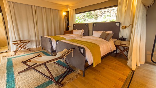根据哈尼民族文化,酒店用“森林-水系-村寨-梯田”四素共构的梯田文化将帐篷客房划分成了四个区域并以此命名。每个客房庭院都配有按摩泡池,篷内遵循自然主义设计风格,卫浴设施齐备,每一件家具都精心挑选,还配备了地图画架、望远镜等用品,居住于内仿佛回到了考古事业蓬勃发展的17、18世纪。